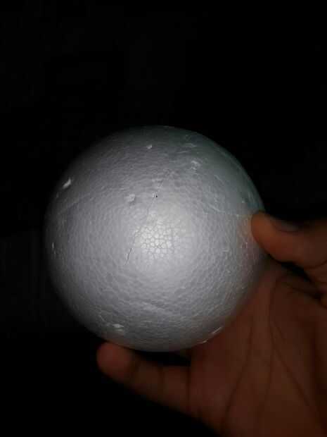 usé una espuma de poliestireno bola que corte por la mitad y talladas algunas de las partes a hacer arco en el centro por lo que podría sentarse con la superficie de la cabeza luego caliente pegado en su lugar y agrega cinta delgada hockey negro a los ojos y hace la camada x