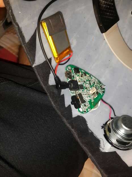Luego pegué la placa de circuito y la batería y otro altavoz del mismo modo