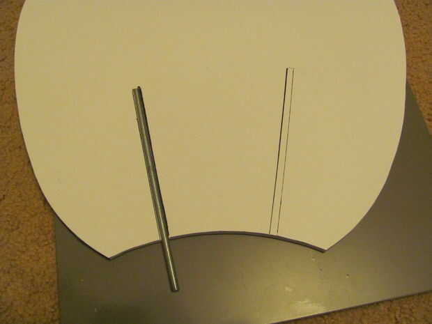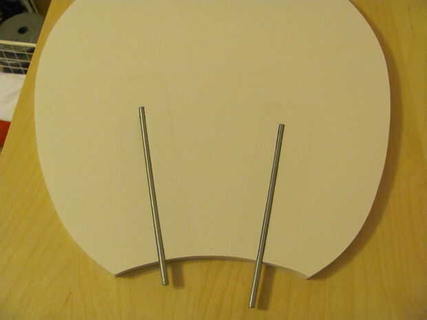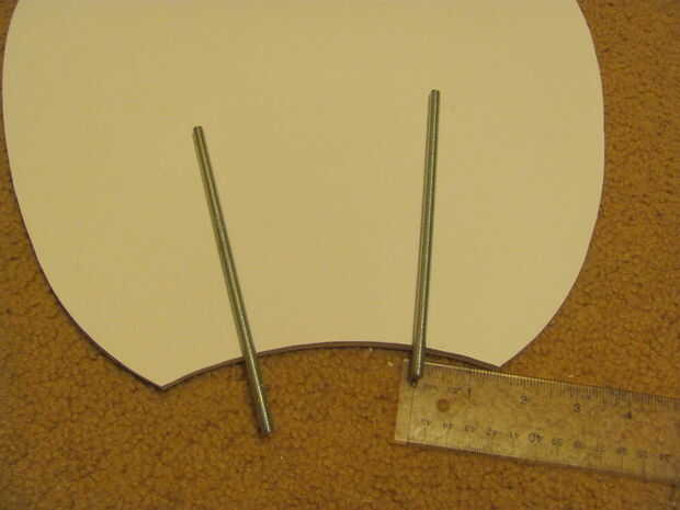 3 - Coloque 2 tornillos en una sola pieza de corte oreja rosca como se muestra en el cuadro 5. Asegúrese de que deja una caída de tornillo hacia fuera sobre una pulgada y 3/4 de la parte inferior mientras que el otro se puede colgar hacia fuera sobre un 3/4 de pulgada de la parte inferior. Uno más largo quepa hacia la sección interna de la cabeza de mau5 porque (como se verá en el futuro medidas) también se utilizará para mantener en el casco que cabe en la cabeza de mau5.