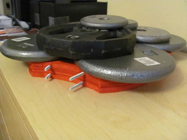 14 - ahora usted tratará de envolver la tela en estas 2 piezas como lo hizo con los pedazos más finos. Asegúrese de que los lados con los tornillos roscados que no tienen la tela envuelta sobre ellos, de que lado se va pegado en la pieza 3 con el lado que no estaba envuelto también, dando por resultado un borde limpio sin problemas. Aplicar la misma cantidad de pegamento del gorila a ese lado y poner la pieza delgada sobre él. No debería tener ningún escape de pegamento fuera de los bordes si aplica el pegamento a razonable distancia del borde, además de la tela absorberá algo de él también.