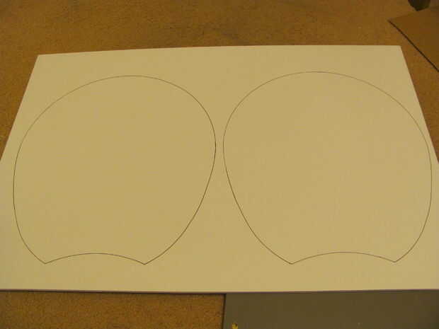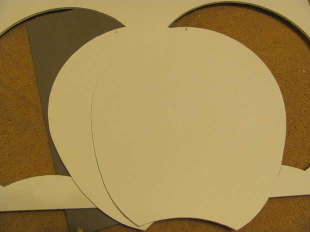 1 - comenzar por remontar hacia fuera el contorno de las orejas de la plantilla que se crea en una hoja de la base de espuma