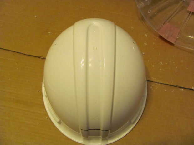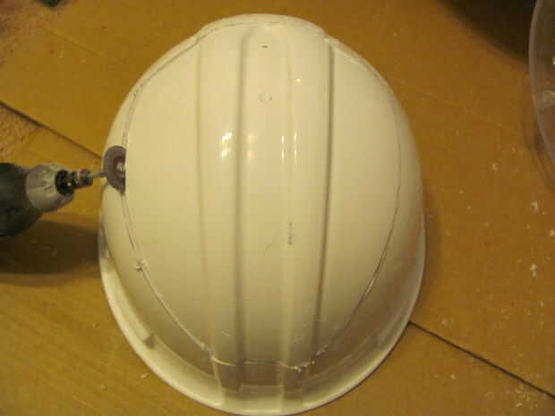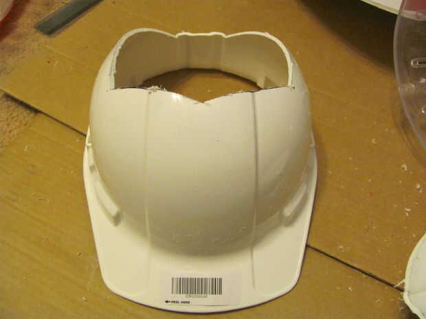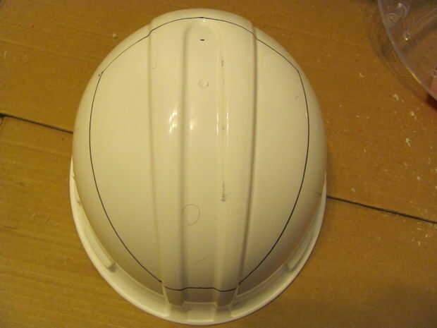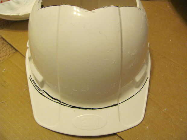 5 - dibuje una línea alrededor de la parte delantera del casco y corte el borde frontal como se muestra en el cuadro 7.