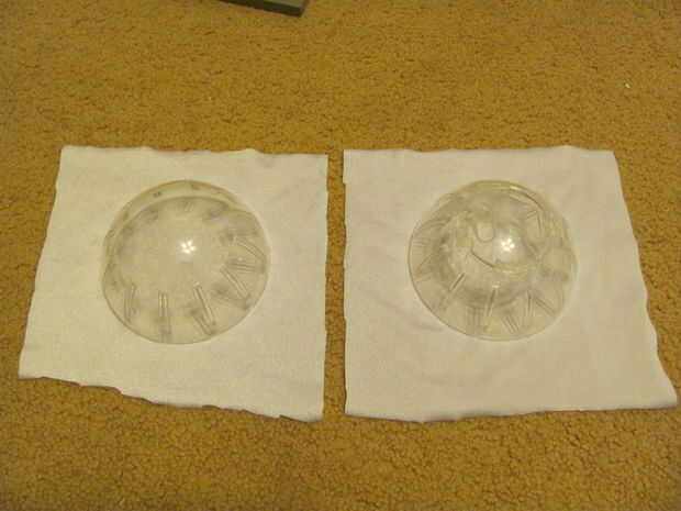 4 - ahora ponen los ojos a la tela, rocíe todo el tejido y el interior del ojo. No es necesario rociar la parte exterior del ojo, además de hará más difícil como cáscara y re aplicar para salir cualquier traslapos y arrugas en la tela. el resultado final debería verse como la última foto.
