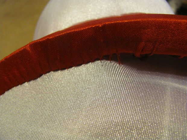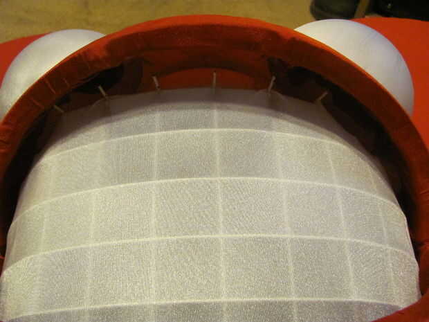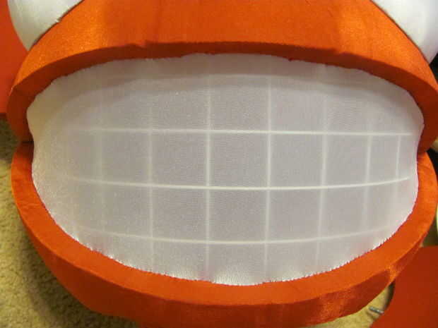 4 - ahora el último paso consiste en coser a la tela blanca boca alrededor de la roja en la cabeza. Se trata de la única costura que se realiza y crea una apariencia limpia a la boca como se ve en las últimas fotos de la Asamblea. Después de esto puedes cerrar las pequeñas incisiones donde entraron los tornillos y luego TERMINES!