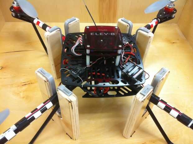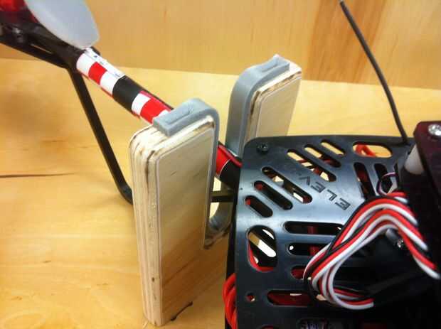 Los espaciadores simplemente martillados en su lugar y atornille por detrás para sujetar en su lugar. He añadido un poco de cinta de tiempo en el espaciador para mantener la madera del rasguño el quadcopter.