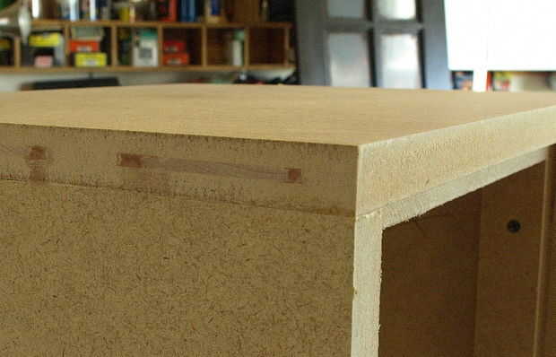 pensé que sería un buen momento para arreglar mi "extra" galletas ranuras. Solo pegué galletas en las ranuras y deje secar durante una hora o así entonces tomó una sierra ajuste de mano de corte al ras y les cortó al ras con el lado.