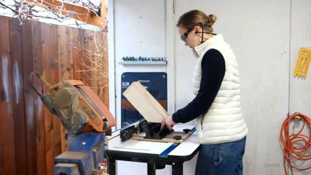 Para hacer mi vida un poco más fácil, he optado por cortar el exceso de madera en la sierra y luego lijar los lados hacia abajo de la descarga.