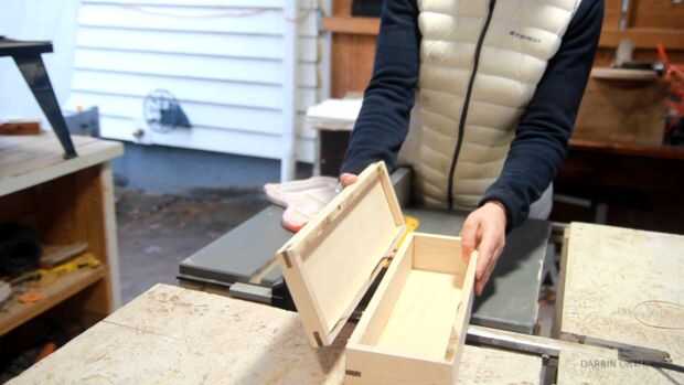 Una vez que las ranuras se corta y lija, corté la caja en mitad de la Sierra de mesa. Fue realmente cuidado aquí y corte de un lado a la vez. Y ahí tienes, una tapa y un fondo. El amor esta técnica.