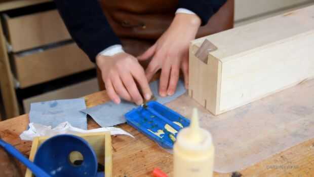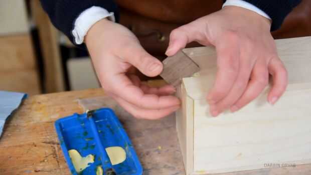 Ahora, para las ranuras, fui con nuez. El contraste existe el amor. Así que cortarlos hasta tamaño y luego pegar en, un poco de luz el golpear ligeramente, lijado a veces si son un toque demasiado grueso y repetición.