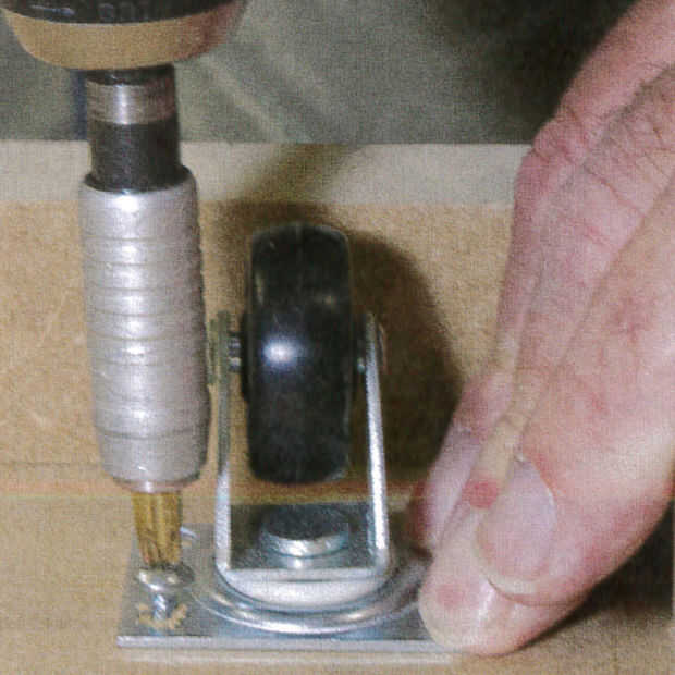 Finalmente deberás adjuntar tus ruedas a la base de la caja de juguete; Esto permite el movimiento fácil y proporciona acceso. Coloque las ruedas en la base de su caja de juguetes usando el taladro y tornillos. Una vez hecho esto su caja de juguetes está listo para usar.