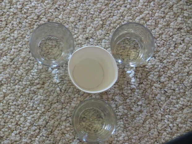 • 3 vasitos, uno con una pequeña cantidad de agua, uno con una cantidad media y otro con una gran cantidad