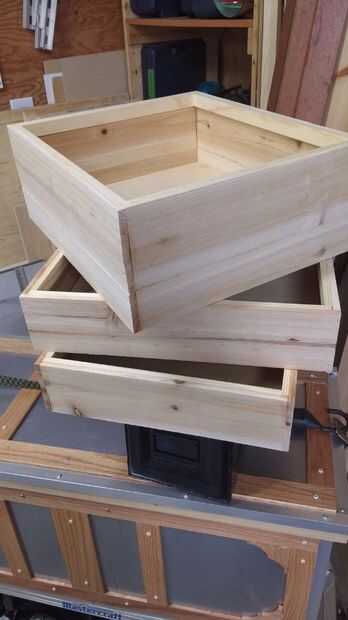 2. usando la parada en el mitre Sierra, cortar los paneles de 3" de las juntas laterales de las cajas. Cada caja tendrá dos placas de 13.5" de largo y dos que son 11" de largo.