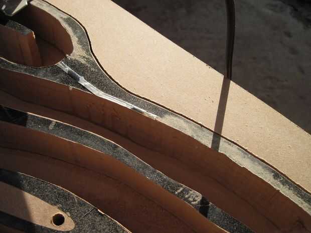 Aquí puede ver que la sierra caladora Sierra de línea, que necesita estar cerca del patrón de diseño, para reducir la cantidad de lijado más adelante, pero no tan cerca que podría cortar en el diseño y hacen ciertas áreas más pequeñas de lo previsto.