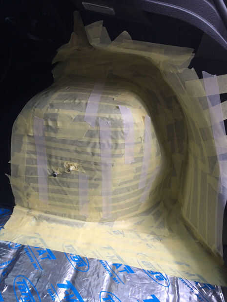 Máscara de la zona que desea para fibra de vidrio - esto le dará la espalda / molde de la caja de sub. Asegúrese de que usted use correcta cinta de enmascarar (cinta de pintor azul es una buena opción) - utilicé algunas cintas barato que tenía en casa y la resina de fibra de vidrio hace extremadamente difícil de eliminar después - sesión 1 aprendido!!!!
