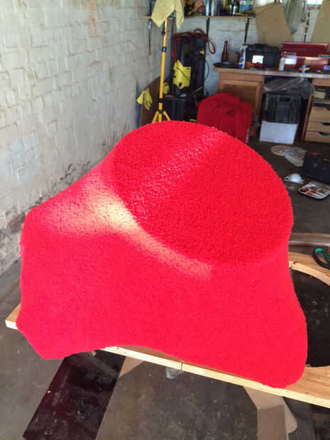 Ahora puede cuelgue su material de la caja y fijarla hacia abajo usando el pegamento de contacto / pegamento pistola!!!! El tipo de material usado es importante - como se ve en la foto he utilizado un material de curso más bien, esto fue un error más tarde cuando estaba tratando de alisar la caja para la pintura... Lección 3 aprendido...