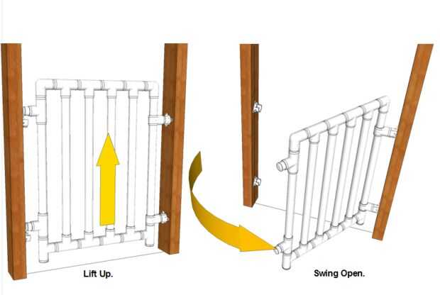 Este modelo en particular es bastante simple y utiliza componentes de PVC sólo para trabajar. Hay dos 'Slip tes' en la estructura que permita que la puerta se deslice verticalmente, sólo un poco por lo que se puede levantar para arriba y sobre las 'tapas de tabla' ese él enganchará en. Una vez sobre las tapas de tabla, simplemente presione hacia abajo y es tan seguro como puede ser.