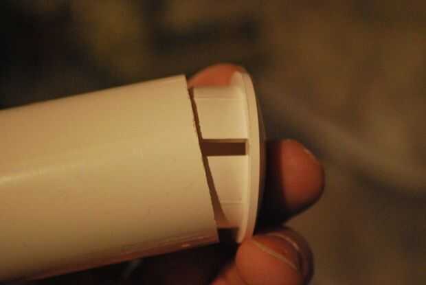 Usando cemento de PVC, capa ligeramente el interior del restantes 2.5" grado de los muebles los segmentos de la pipa e introduzca una tapilla interna en su interior. Limpie cualquier exceso de cemento del PVC que pueden salir. Luego inserte el otro extremo (destapado) del final de los segmentos de grado 2.5" muebles en las dos tes frente a hacia fuera sobre la estructura de la puerta. Unido con tornillos o cemento de PVC.