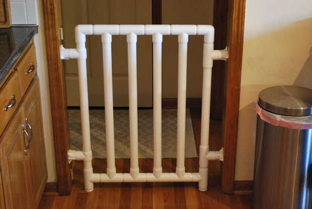 Una vez conectado, la puerta debe pivotar libremente. Inserte las dos tapas de tabla 'modificado' en los mensajes de catch y se alinean en el marco de puerta o pared opuesto. Asegúrese de que la sección que se corta fuera de las tapas de tabla quede hacia arriba. Esto es fundamental. Quieres coloca de modo que la puerta se encaje en ellos. Tornillo en los montantes o marco de puerta con tornillos de 2".
