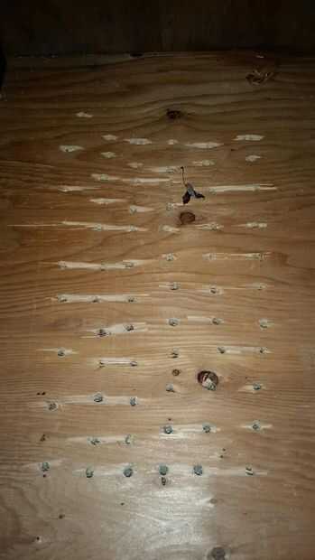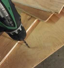 1. antes de montar la caja de nido, tome la parte inferior 23 "x 22" pedazo de madera contrachapada, con el taladro, taladro un generoso número de orificios y aproximadamente ¼" a ½" de diámetro, 1"- 2" aparte.