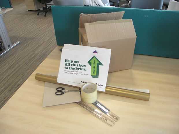 Para construir su caja necesita cellotape, tijeras, 2 reglas, envoltura de papel, nuestras etiquetas de caja de colección, un pedazo de cartón y la caja de cartón de su elección.
