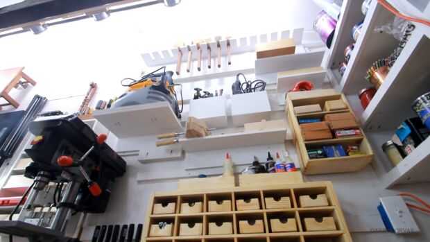También hice un estante para mi aspiradora pequeña tienda. Una de las razones de por qué me encanta este sistema: Quiero ser capaz de mover mi aspiradora de taller entre mi taladro y mi máquina CNC. Os adjunto una cala francés por encima de la CNC, y entonces la prensa del taladro se encuentra justo debajo de mi pared de Cala francés. Así que ahora, puedo mover fácilmente la plataforma con la aspiradora de taller desde una ubicación a otra sin ningún esfuerzo en todo, y es el suelo y no de la manera que es genial.