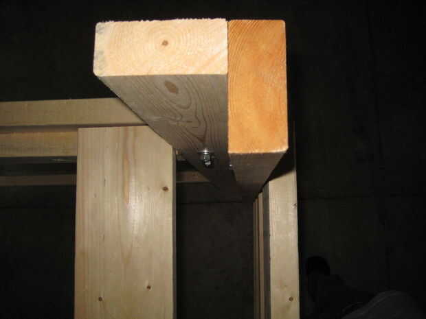 Fijar dos 2 X 6 en ángulo recto con tornillos. Línea les hasta como se muestra en la foto. Asegúrese de hacerlos como