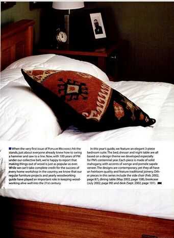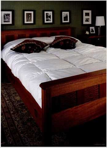 Acentos decorativos de chapa del sapele Pomeles y wenge oscuro dan nuestra cama un toque de distinción al mismo tiempo atar a las otras piezas de la serie. Estas maderas exóticas están disponibles de proveedores por correo tales como A & M madera especialidad Inc., 358 Eagle St. N., caja 32040, Cambridge, Ontario, Canadá N3H 5M 2; www.amwoodinc.com. la cama se construye con una serie de listones de soporte que eliminan la necesidad de un resorte de caja y las dimensiones que mostramos se encargará de un colchón tamaño Queen. Mientras que colchones varían en espesor, que es 8 pulgadas gruesa producirá una cama de 191⁄2 pulgadas de alto. Para un colchón de diferente tamaño o grosor, simplemente ajuste las dimensiones según sea necesario.