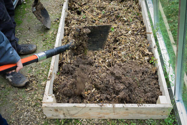 • Cubrir la cama con esa mezcla, para que el suelo es de unos 15 cm de profundidad