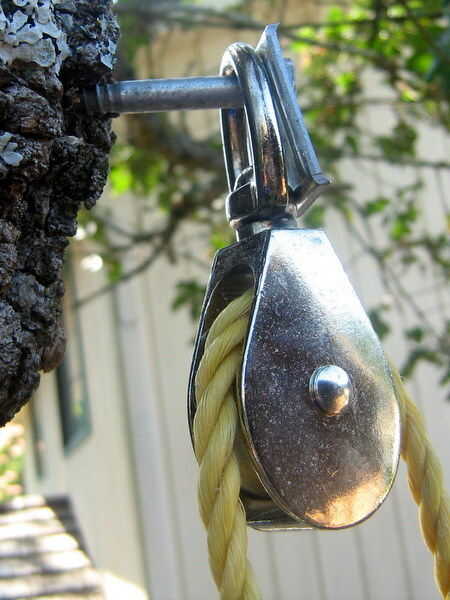 Una polea es muy divertido para los niños, pero es útil para transportar herramientas etc. hasta la cubierta. Poner uno en ahora y colgar una cesta de él. Un mosquetón de escalada en el extremo de la cuerda es perfecto para desconexión rápida.
