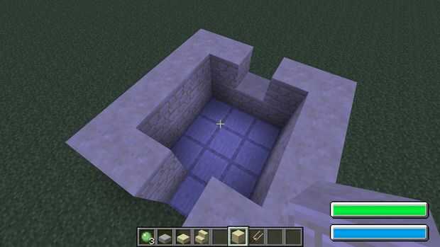 Llene la base con un bloque de su elección, utiliza losas de piedra. Luego, comenzar las paredes alrededor de la base con cualquier bloque (utilizado piedra arenisca para ese look romano) con una pequeña abertura para una segunda capa de door.build al igual que el primero de ellos sólo con un agujero en la pared con la puerta de una ventana. Repita hasta que las paredes son cuatro bloques de alto.