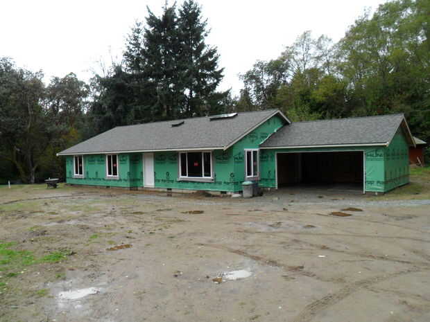 Después de una inspección por el condado para las conexiones de la Fundación, quienes redactaron volvió y puso en el suelo, dentro y fuera de las paredes. Las cerchas se fuera del sitio y entregadas y colocadas en las vigas de borde. Junto con el braguero de la entrega fue el diseño de ingeniería con el sello de los ingenieros. Cada cercha tenía una certificación con grapas a la misma certifique que fue construido según el diseño. Los autores volvieron, volteadas las cerchas del techo y les instalación. Luego forraron las paredes y el techo. La base y el revestimiento se orientaron a tablero del filamento. Cada hoja era numerada y referenciada en los planos. Por último, los autores envuelven la casa con una barrera de vapor y el viento.