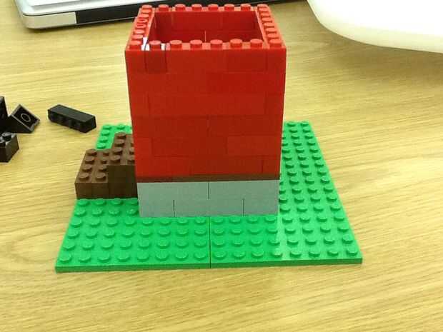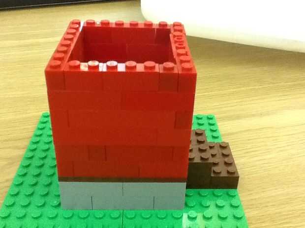 este modelo de la parte delantera de una casa de Lego es rápido y fácil de hacer. Podrá disfrutar de sus hijos lo ha construido en ningún momento.Materiales necesarios:1:16 x pieza base 16 clavija verde7: 2 x 4 piezas clavija azul1: 2 x trozo de peg