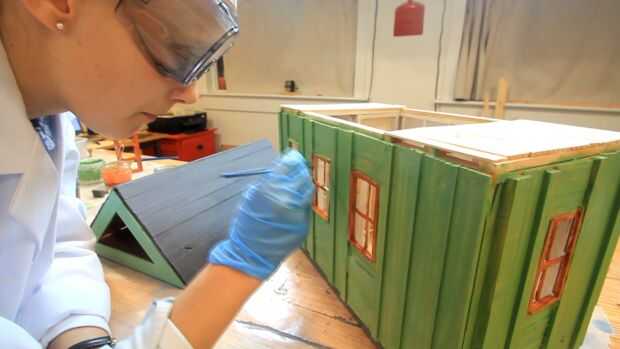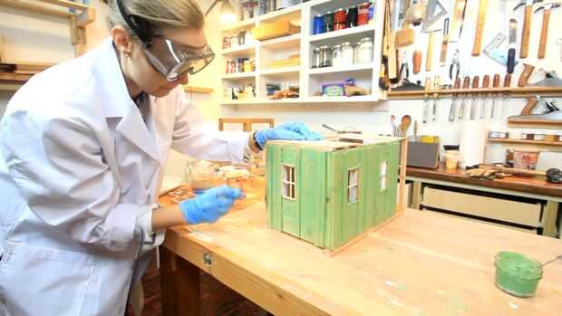Cuando hayas construido tu casa hace un enorme diferente a pintar y tenga cuidado de utilizar colores diferentes para que realmente luzca realista. Dejé el piso de madera y loft simplemente engrasado, pero everythhing más cuidado y pintado en diferentes colores. He creado mi propia pintura utilizando pintura de leche (la pintura se compone de polvo de leche en polvo, agua, pigmento y una pequeña cantidad de hidróxido de calcio)