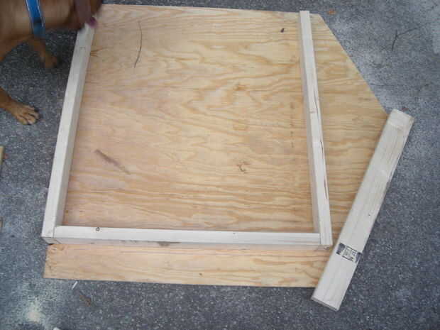 materiales:-Aprox. 250 tornillos al aire libre-(7) 4'x 8' hojas de madera contrachapada-(2) 4 "x 6" x 6'-(1) 4 "x 4" x 12'-(1) 4 "x 4" x 14'-(4) 2 "x 4" x 12'-(1) 2 "x 4" x 8'-(1) 2 "x 7" x 4'Her