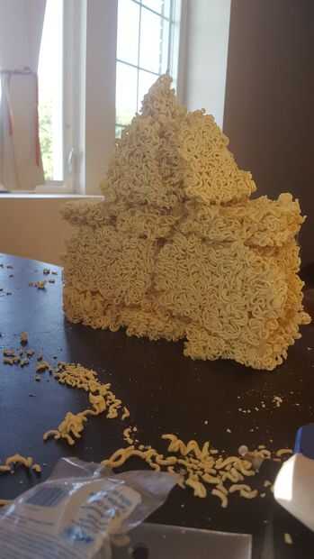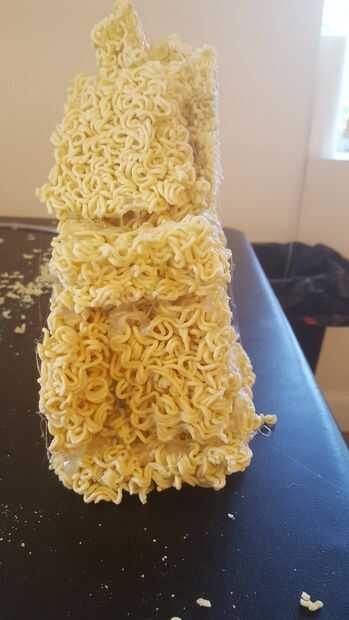 Si ejecutaste en cualquier trabas en el camino con las advertencias de seguridad en los pasos específicos o probar un tipo diferente de ramen. Sobre todo si funcionó en problemas la próxima vez intenta construir recuerda paciencia queda la regla #1 cuando se trabaja con ramen y pegamento caliente. Gracias por leer estas instrucciones y espero que os he enseñado una habilidad valiosa para ayudarle a sobrevivir a la Universidad o mejorar tus habilidades artísticas, escultura.