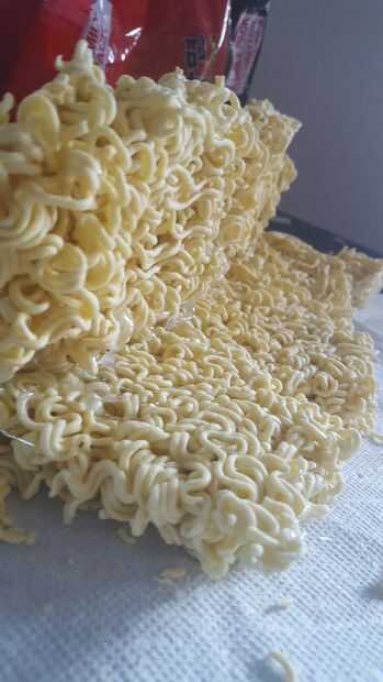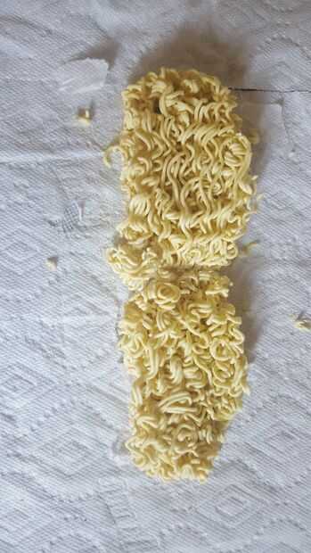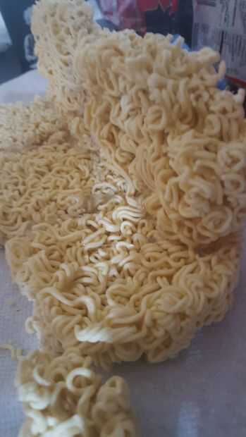 Ahora que tienes la base de todo sistema el siguiente paso es la pared posterior. La pared posterior eficazmente es la base para las otras paredes. Las paredes no será como de espesor / profundidad como base pero son tan largo si no más que la base. Corte/rotura dos bloques de maneras mucho ramen como se muestra en la foto de arriba. Si su base es más de tres cuadras de ramen puede necesitar más de dos.