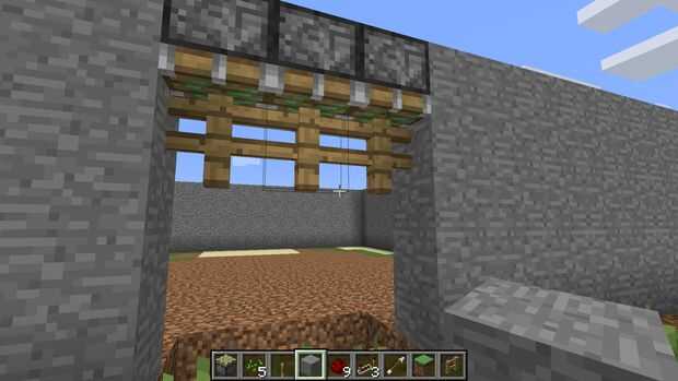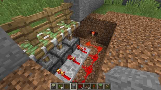 Este es un paso algo complicado. así que voy a explicar lo mejor posible. en primer lugar, hacer un agujero en el suelo que está frente a la puerta, debe parecerse a la imagen. las dimensiones son, profundo 2 cuadras, tres cuadras de ancho. y 2 cuadras de ancho, recuerda, el interior de la pared. colocar tres pistones pegajosos en el marco de la puerta poner bloques de elección en los pistones pegajosos. A mostrarles lo que hice más tarde. después, colocar polvo de redstone y repetidores como en las fotos. también, usted tendrá que cavar una cavidad en la pared. última instrucción para este paso. en la imagen de excavar la parte superior por lo que es sólo un agujero grande en la fortaleza. Luego, poner pistones pegajosos hacia abajo en la puerta. debe buscar al igual que la imagen.