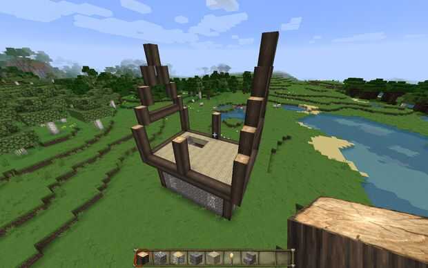 Empezar colocando un tronco de roble fuera de cada esquina y construcción de cinco bloques de alto. Conecte los troncos a lo largo de la parte inferior del marco.