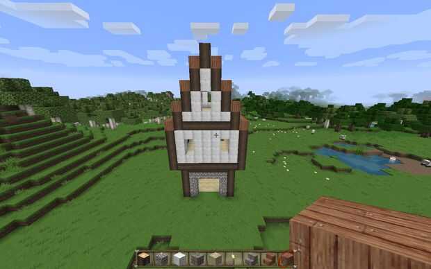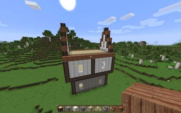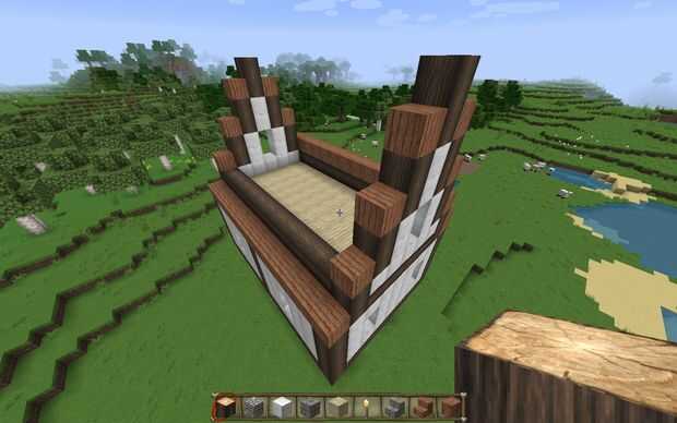 Ahora coloque una línea de troncos de roble a cada lado - se trata de la parte inferior del interior de la pared y proporcionar soporte para el techo. :)