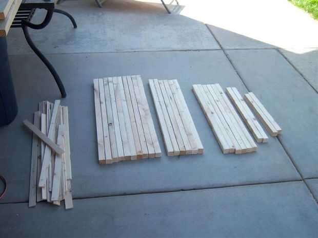 Aquí es cómo los medí. Quería mantener las mediciones muy fácil pero maximizar el uso de materiales. Una 2 "x 4" pieza de madera realmente mide 1,5 "x 3,5" así que aquí está lo que hice:
