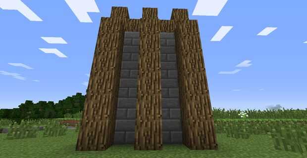3. poner una capa de Tosca madera sobre la pared, y de cada otro bloque pone un pedazo de la misma madera haciendo una especie de diseño rugoso.