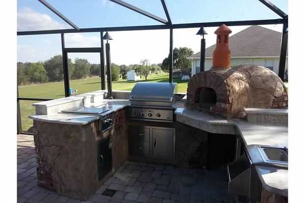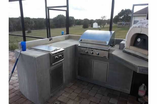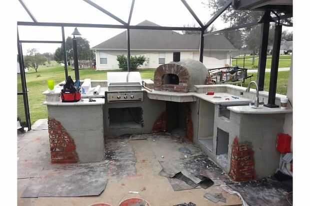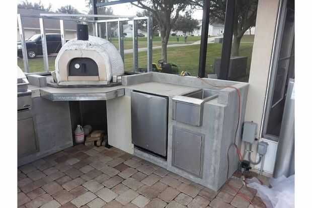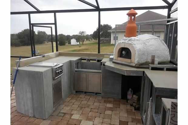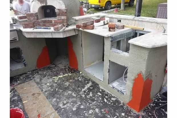 Esta es la forma más tradicional para construir una cocina al aire libre. En pocas palabras: en primer lugar un marco es soldado con autógena del acero inoxidable 304 o de postes de aluminio. También puede unirse a ellos mediante tornillos. Luego el tablero del cemento con los recortes que se aplica sobre el marco. La parte superior está cubierta con contadores (generalmente granito, aunque veo otro instructivo aquí sobre el cemento los - debe ser muy pesados aunque...). Todo el hardware está instalado, parrillas, puertas, etc.. Y luego el panel de cemento es cubierto con la chapa de su elección - estuco, piedras, baldosas o una combinación de todos.