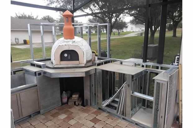 Esto forma una gran e indiscutible para construir una cocina. Sin embargo... Como acero inoxidable, como son los postes de madera son aún vulnerables a la oxidación si estás cerca de la costa. Y en general de acero inoxidable se oxida al aire libre. Uno de los problemas es que una estructura como esta a menudo no puede soportar un peso muy alto (a menos que se construyó con postes verticales extra). Otra forma es utilizar paneles de hormigón y construir lo agujero de ellos.
