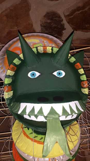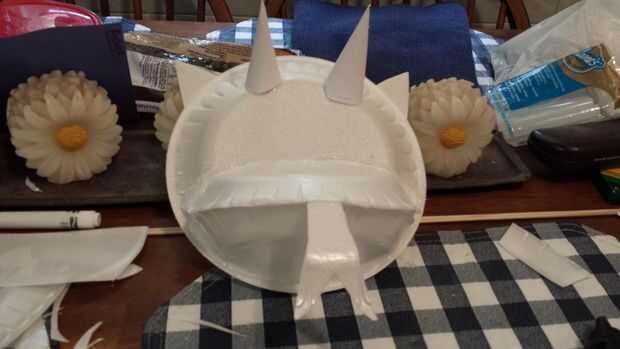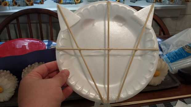 (Utilizan muchas diversas placas de espuma de poliestireno para crear la cabeza de nuestra cometa. Y también utilicé las varillas para reforzar la cabeza.)