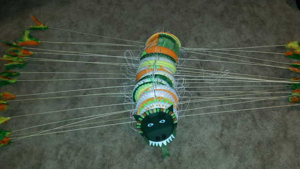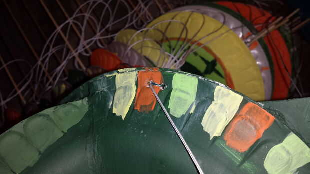 A continuación realizarás la brida. Para ello colocas la cabeza en el suelo, sobre una superficie plana, frente a usted. Sujete el extremo de las cuerdas horizontales juntos y estén incluso. Siguiente tire la cadena superior de la cometa hasta la parte superior de la cabeza es de la tierra y en unos 15 grados de un ángulo al piso. Luego amarrar todas las cuerdas con un nudo de lazo.