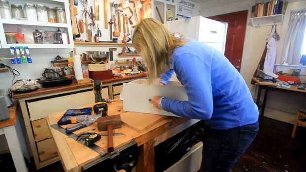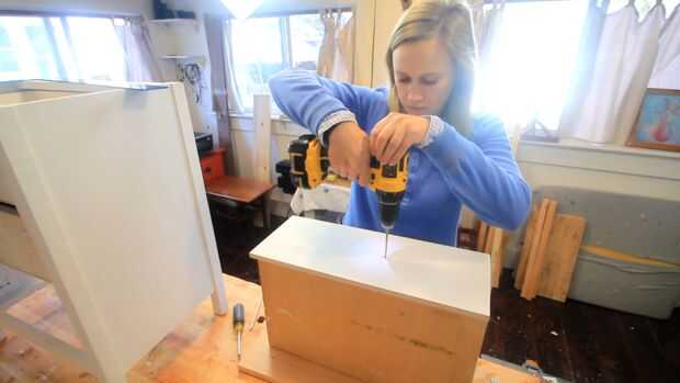 A continuación medí para el hardware, y taladré agujeros para poner en algunos tirones de níquel cepillado agradable.
