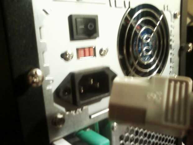 Paso 6 Después de que lo tiene todo enchufado y derecho. Enchufe el cable de alimentación a la parte posterior. Asegúrese de que el cable de alimentación está enchufado en un tomacorriente de pared. Foto 6 Asegúrese de que interruptor es en.