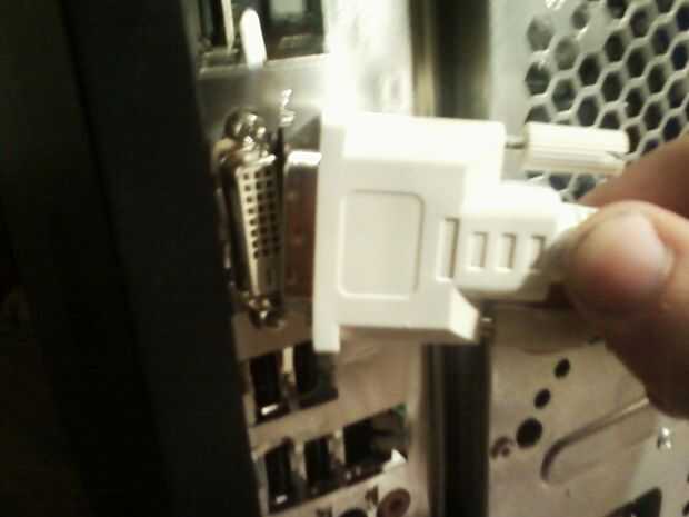 Paso 4 Conecte el cable de monitores y atorníllelo en su lugar. Foto 4