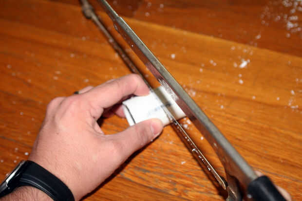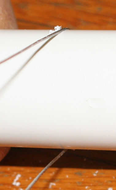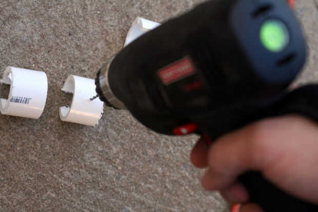 Tirón de la "C" en forma de "soportes" para que el lado redondeado mire hacia y la muesca sobre el terreno. Utilice un taladro y perforar un agujero ligeramente más pequeño en diámetro que los tornillos de sus. El agujero debe estar directamente frente a la corte el muesca. Hacer esto para cada uno de los 1.5" Slip x conectores Slip.