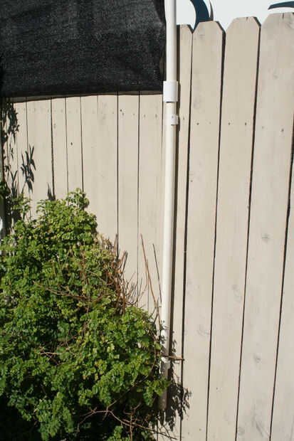 Hacer esto uniformemente en toda el área a ser sombreada. Para mí este fue un juego de pinzas sobre cada 5 pies. Estoy en el lado de la valla de piquete así que traté de montar los soportes en el centro de la barra en vez de cerca de un borde para que mis medidas varían de sistema a sistema.